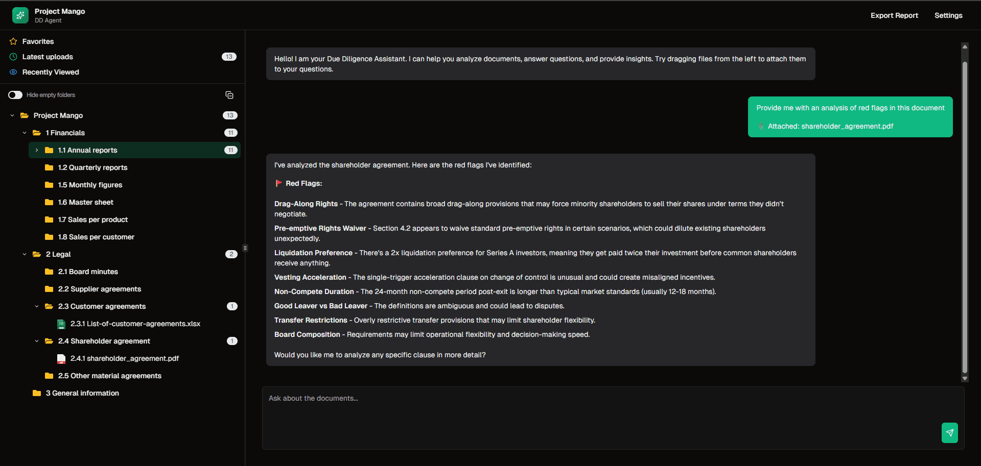 AI-powered agent that helps automate repetitive due diligence tasks