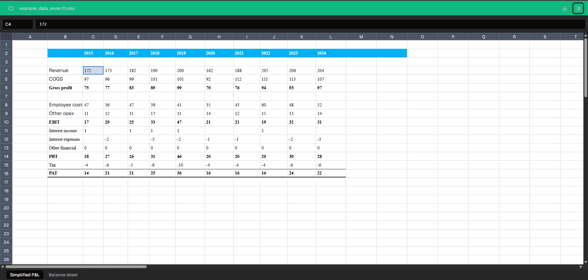 Navigate sheets and interact with data directly in your browser