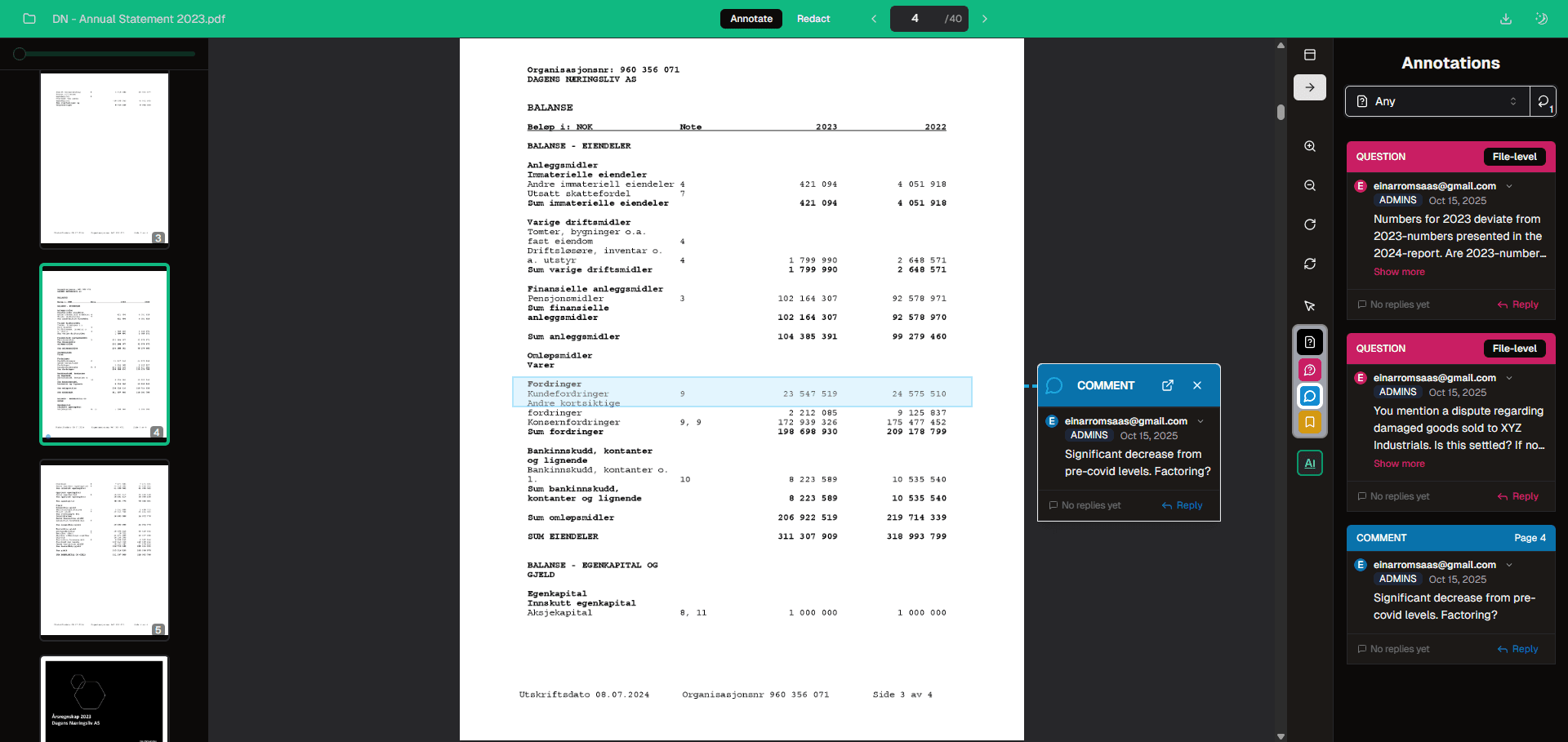 Track discussions and get answers in context for faster due diligence