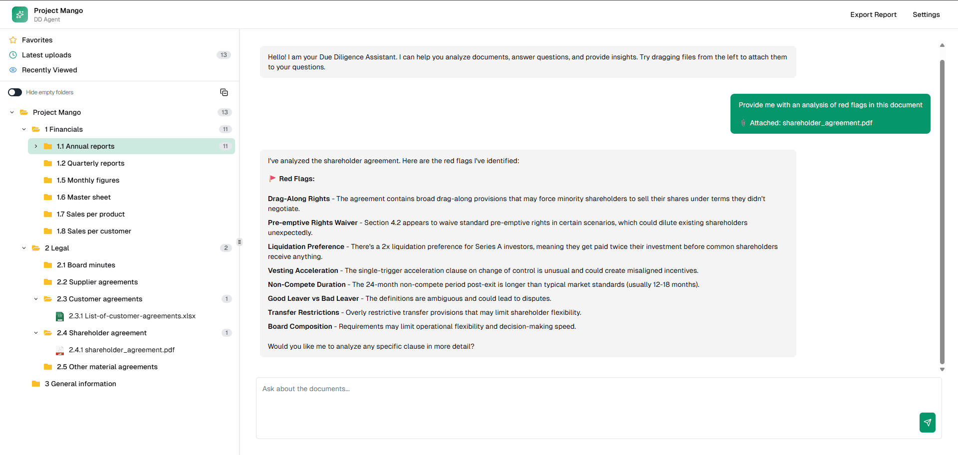 AI-powered agent that helps automate repetitive due diligence tasks