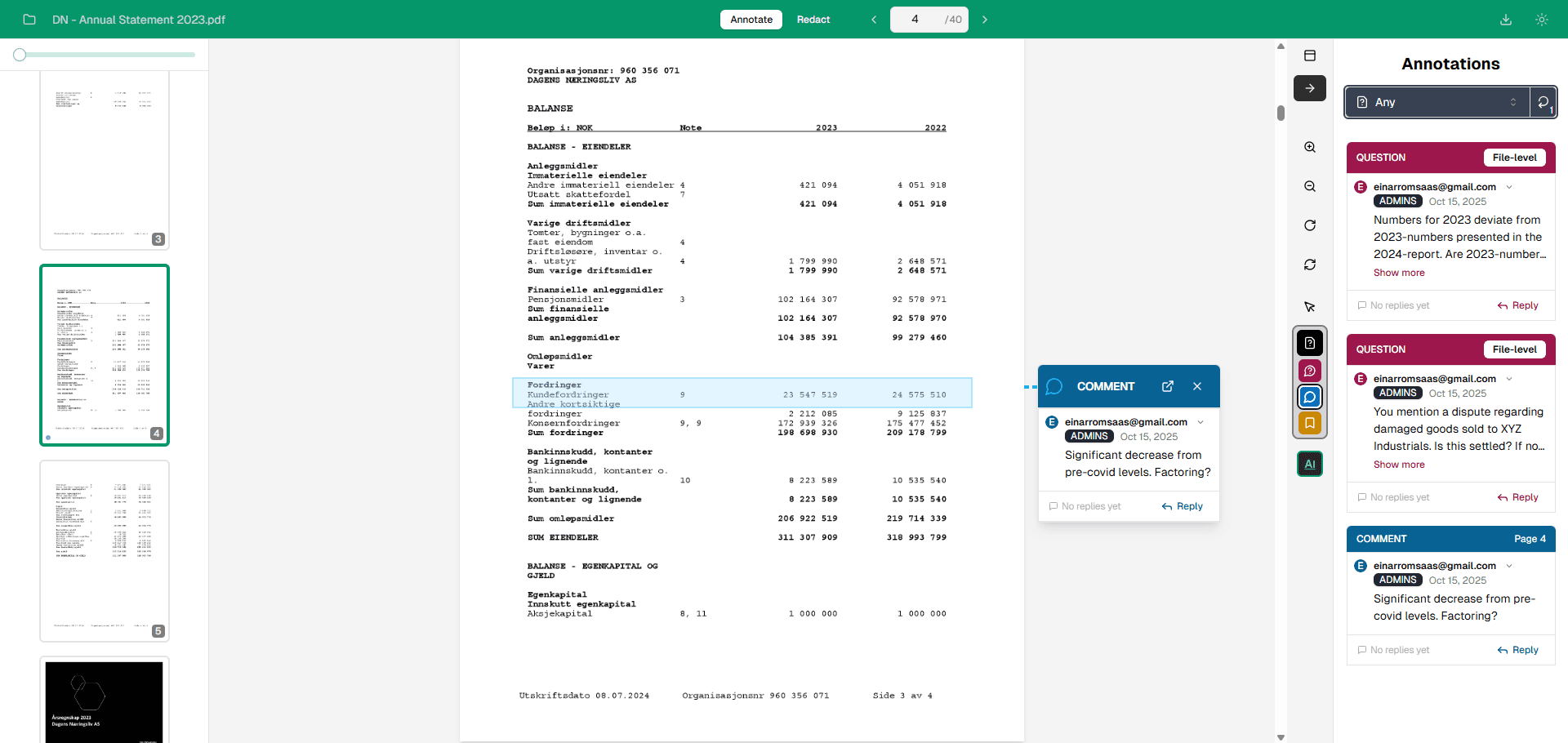 Track discussions and get answers in context for faster due diligence